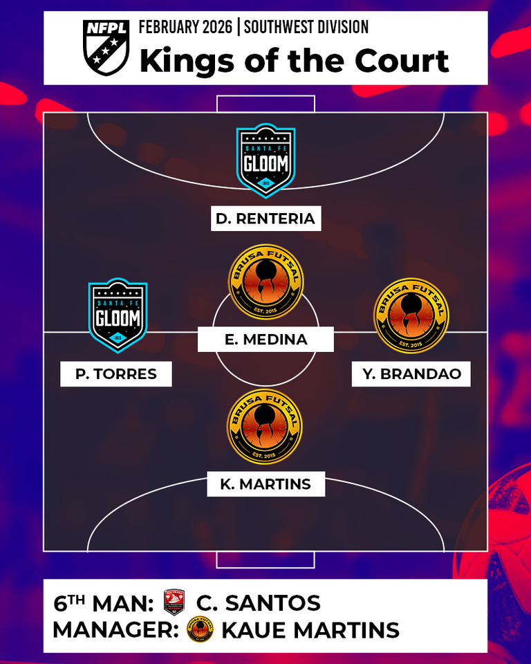 February was a defining month in the NFPL Southwest Division. BRUSA Futsal Club continued their undefeated run and established themselves as the team to beat, while Santa Fe Gloom and New Mexico Flagship fought to keep the race for second place competitive.