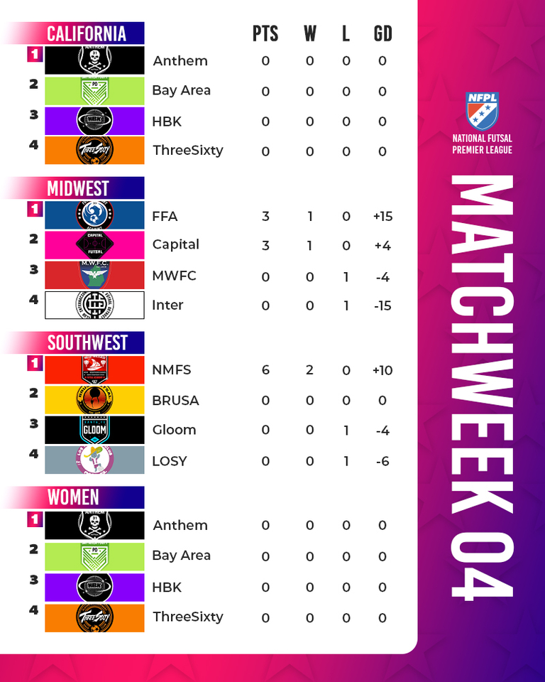 Stay tuned here and on the National Futsal Premier League social platforms for coverage, previews, highlights, and more.